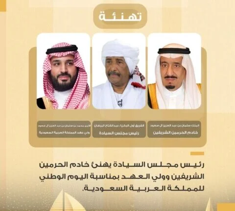 Le président du conseil de souveraineté, le lieutenant-général Abdel Fattah Al-Burhan, a adressé un message de félicitations au Serviteur de deux Saintes Mosquées, le roi Salman bin Abdulaziz Al Saud, roi du Royaume frère d’Arabie saoudite, à l’occasion de la fête nationale de son pays.